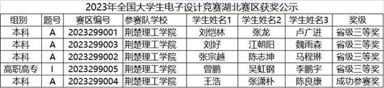 8月15日,2023年全国大学生电子设计竞赛湖北赛区赛公布结果。电子信息工程学院参赛队在本次竞赛中获得省三等奖4项。