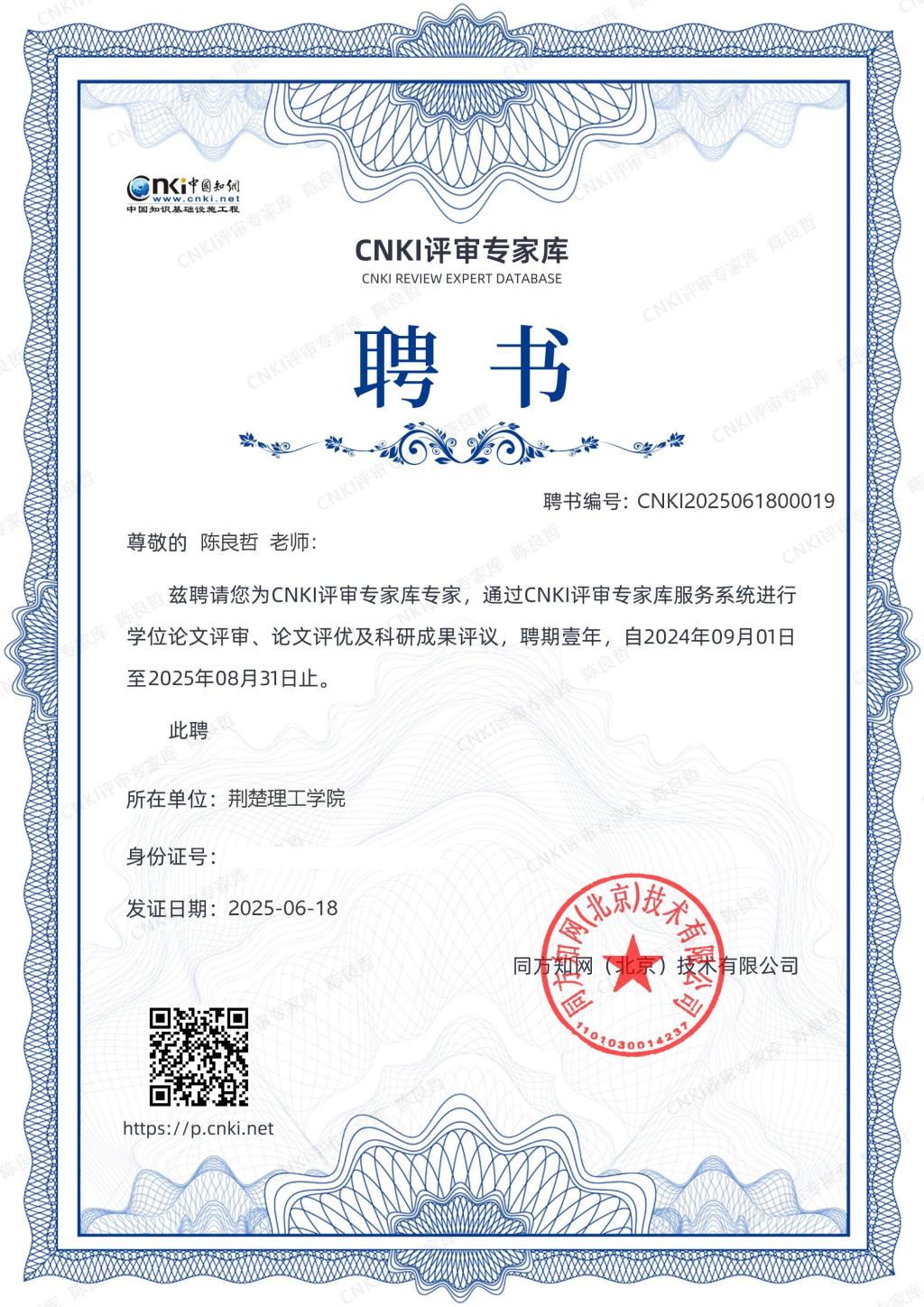 近日,中国知网(CNKI)依据所在学科成就和学术成果,邀请我院陈良哲副教授作为评审专家入驻CNKI评审专家库系统。陈博士长期深耕储能材料与器件、智能传感与感知领域,取得丰硕成果,发表40余篇高质量论文,主持多项重要科研项目。